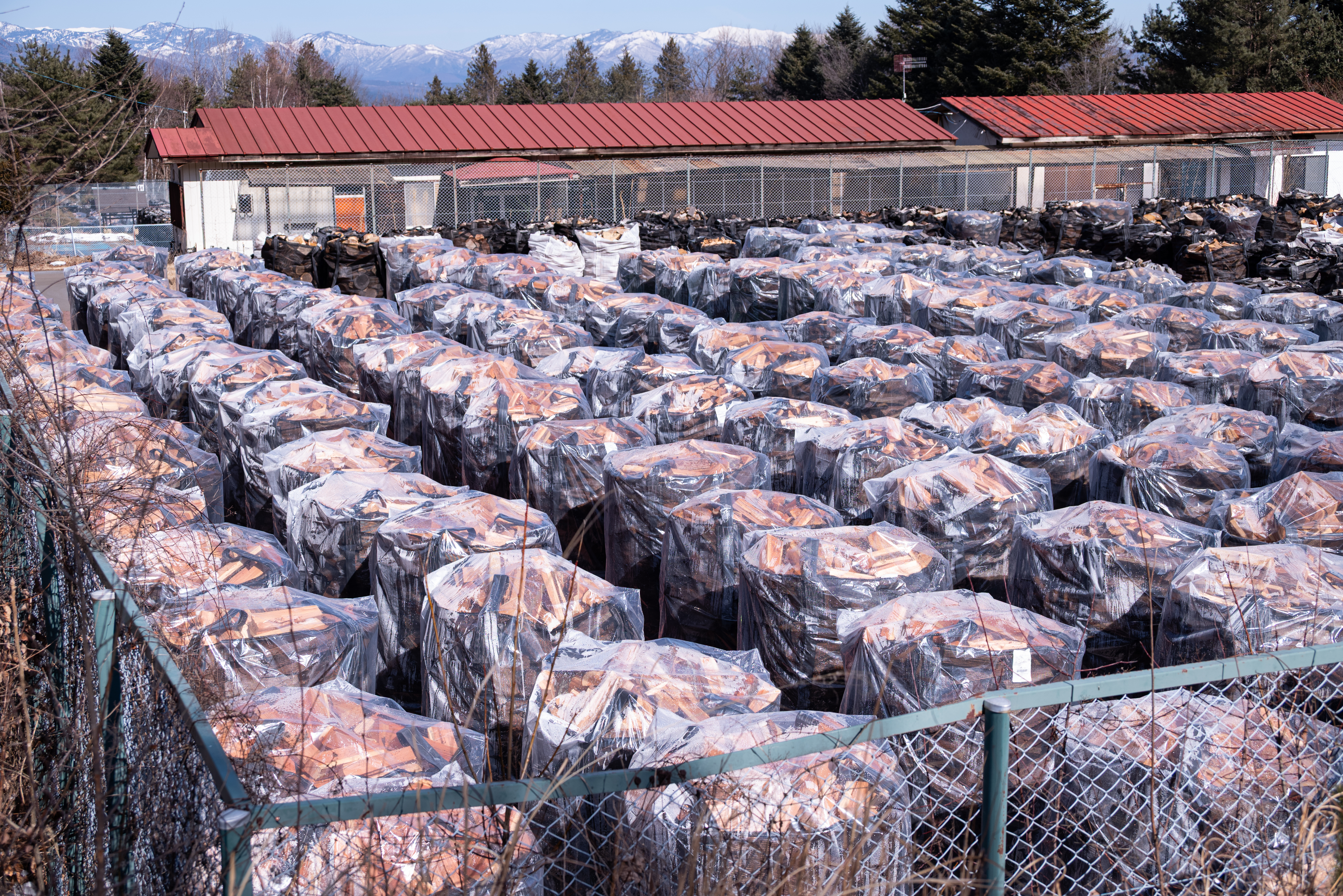 膨大な量の薪を乾燥管理